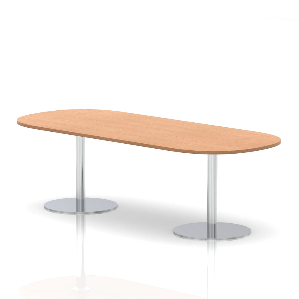 Italia is the ultimate style statement - whether for meetings, conferences, boardrooms or dining areas. This table is topped by the clean lines of a heatproof, clean looking melamine worktop that requires minimum maintenance. Underneath the brushed steel trumpet base and post design looks striking and has the practicality of eliminating any knee and leg traps underneath.