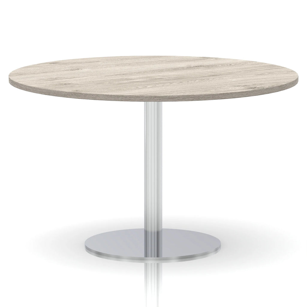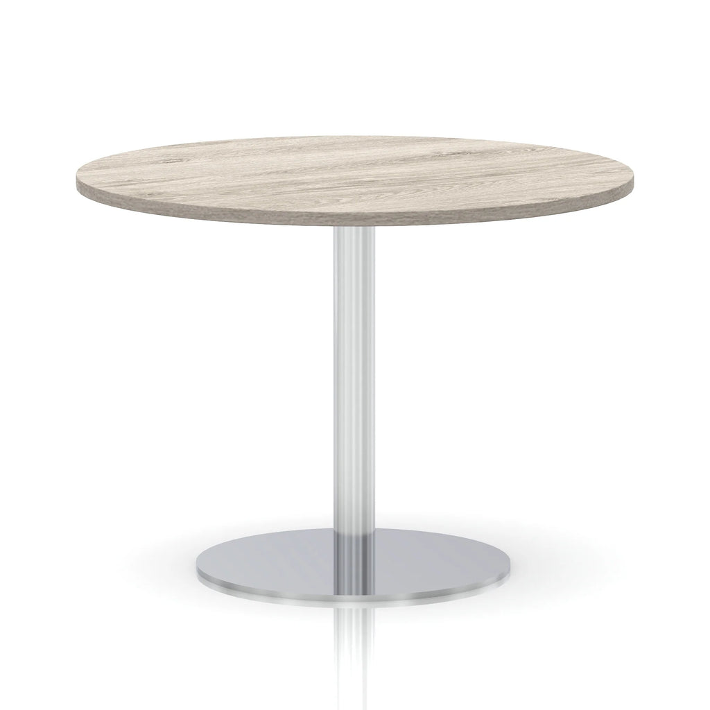 Italia Round Poseur Table Silver Leg - Grey Oak