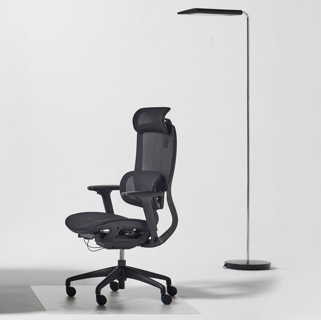 The Anders LED floor lamp is a stylish and versatile lighting solution for any modern space. With its sleek chrome and black finish, it adds a touch of sophistication to your office or home. The lamp features a unique reversible LED head that allows you to easily switch between direct and indirect lighting, making it perfect for both focused tasks and ambient illumination. Control your lighting experience with three distinct color temperature levels and a dimmer for precise brightness adjustment.