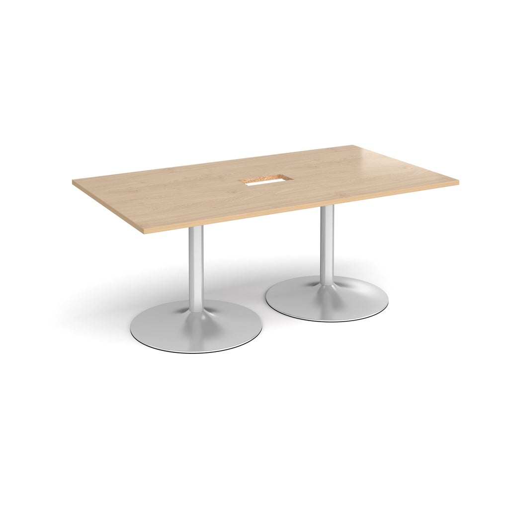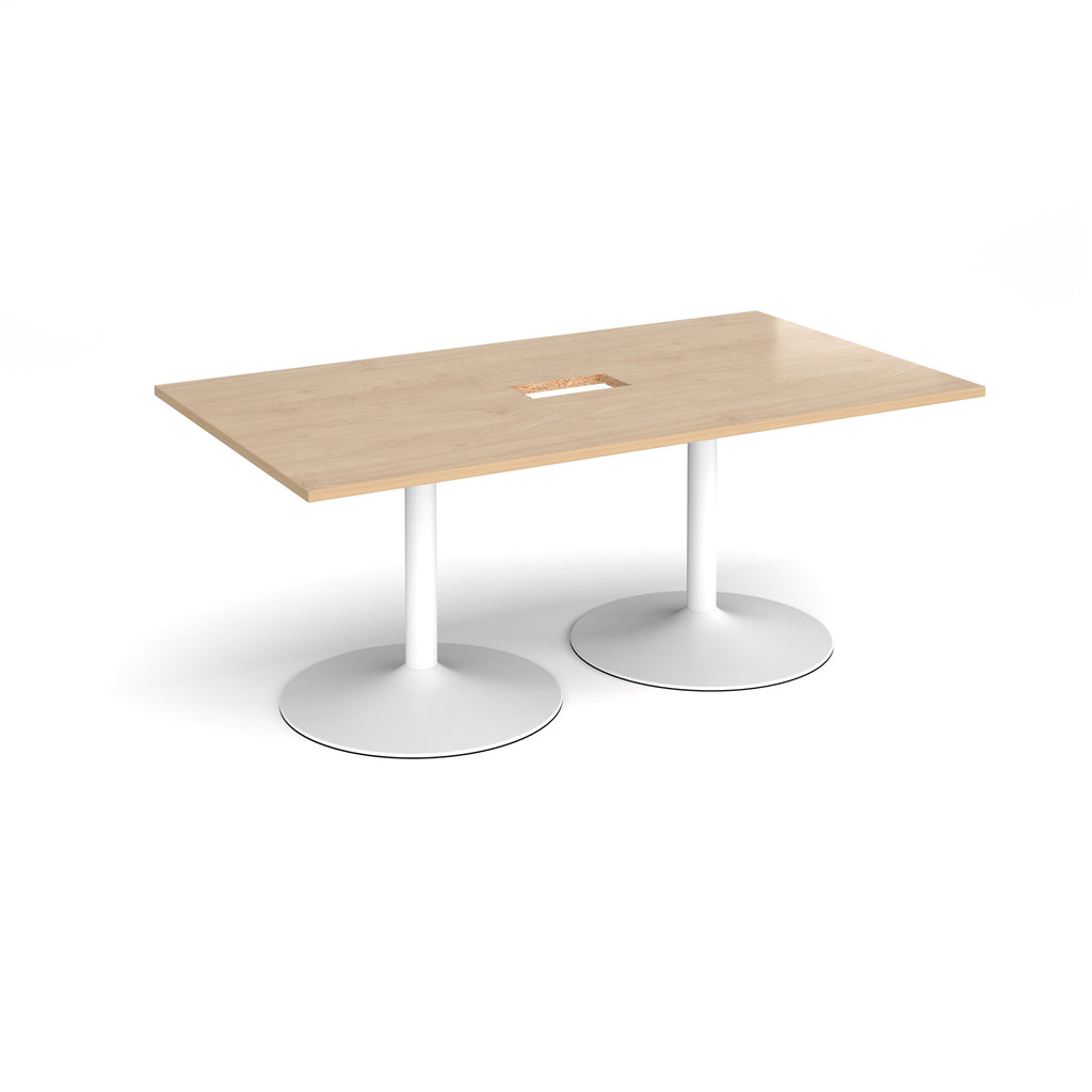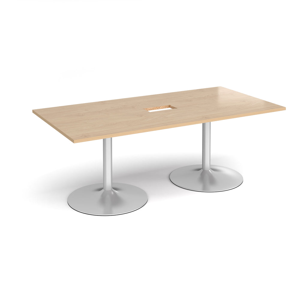Trumpet Base Rectangular Boardroom Table With Central Cut-Out - Kendal Oak