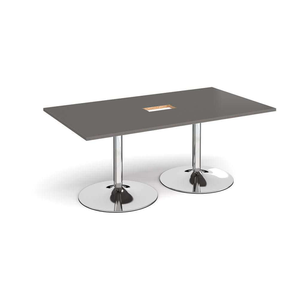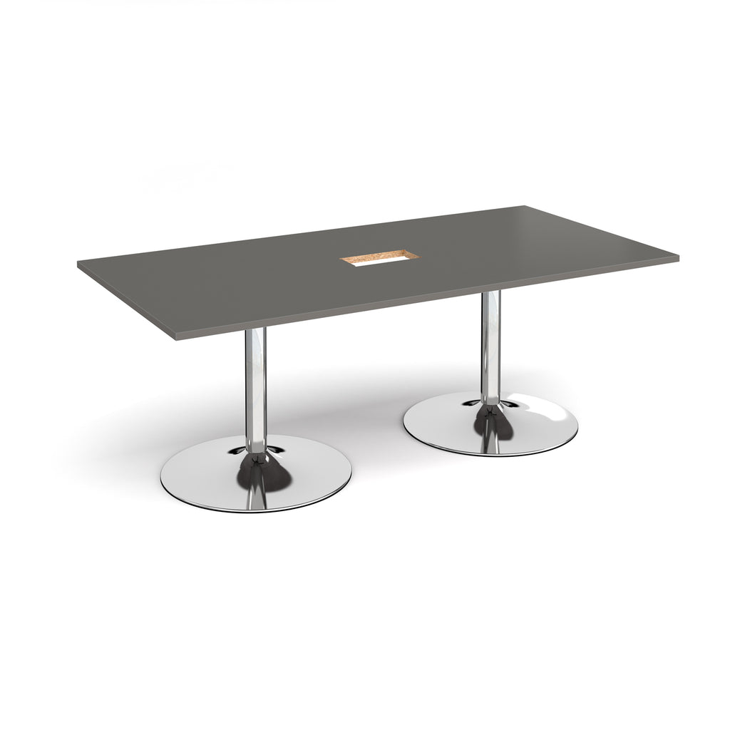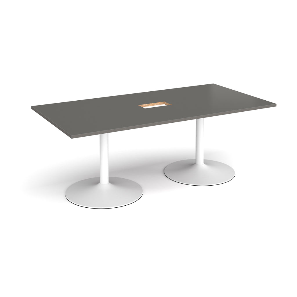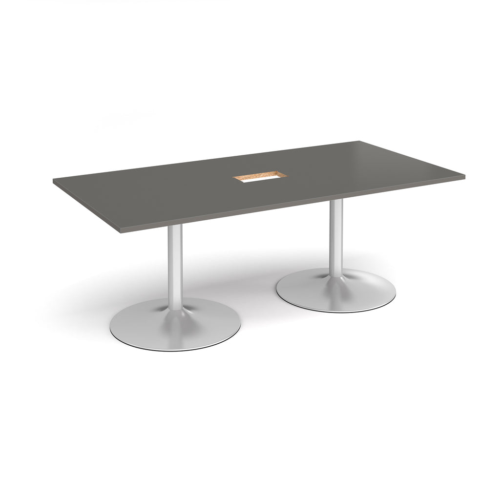 Trumpet Base Rectangular Boardroom Table With Central Cut-Out - Onyx Grey