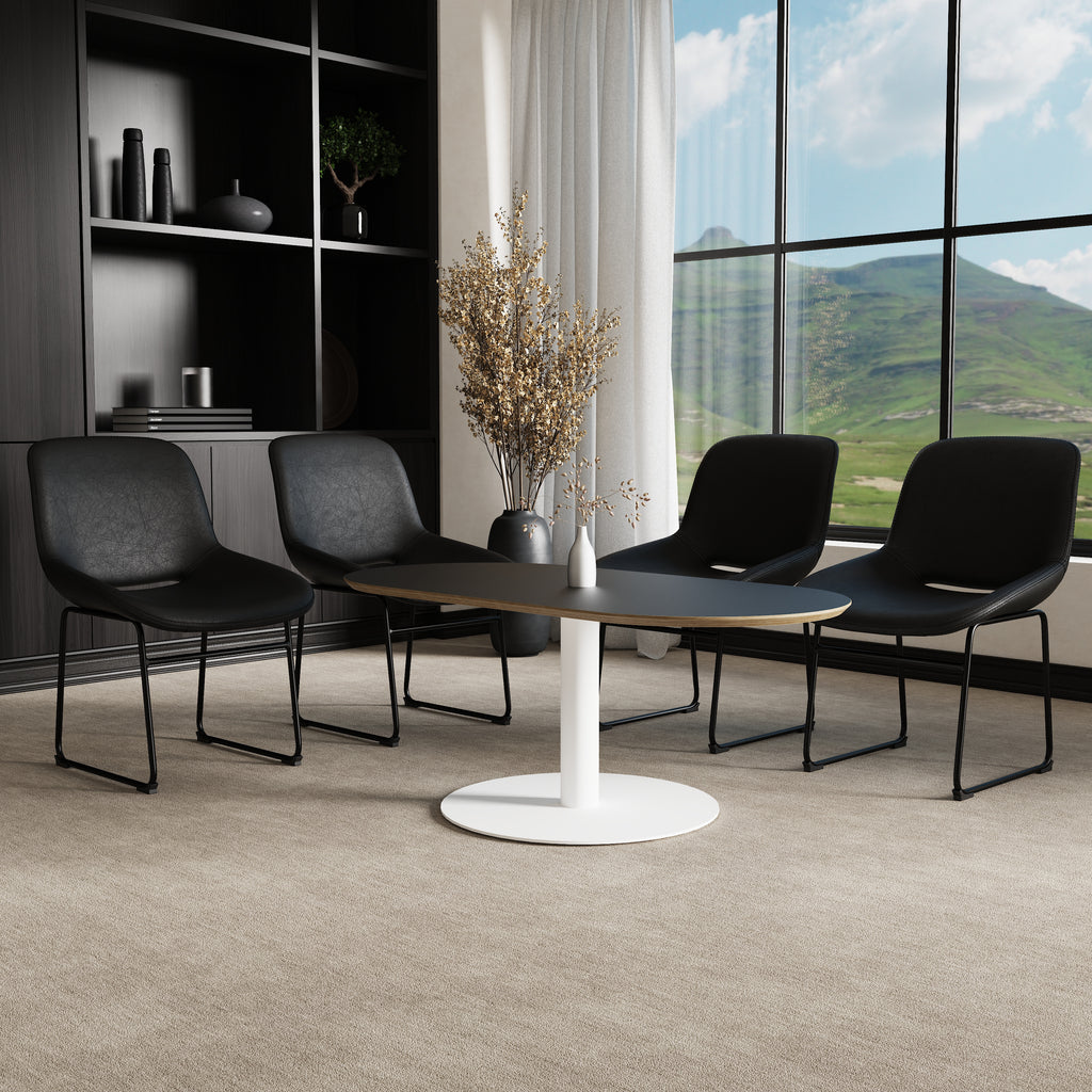 Stowe combines a contoured PU leather seat with a sturdy steel sled frame for lasting support. Its gently curved profile delivers comfort that suits canteens, cafés and casual meeting areas alike - an easy choice for practical, everyday seating with style. Create inviting spaces where people connect, collaborate, and unwind with the Café & Bistro collection. Built for everyday use, each piece blends durability with contemporary design, making it ideal for dining areas, breakout zones, and shared workspaces. From high tables and stools to compact café settings, the range adds character and purpose to any environment.
