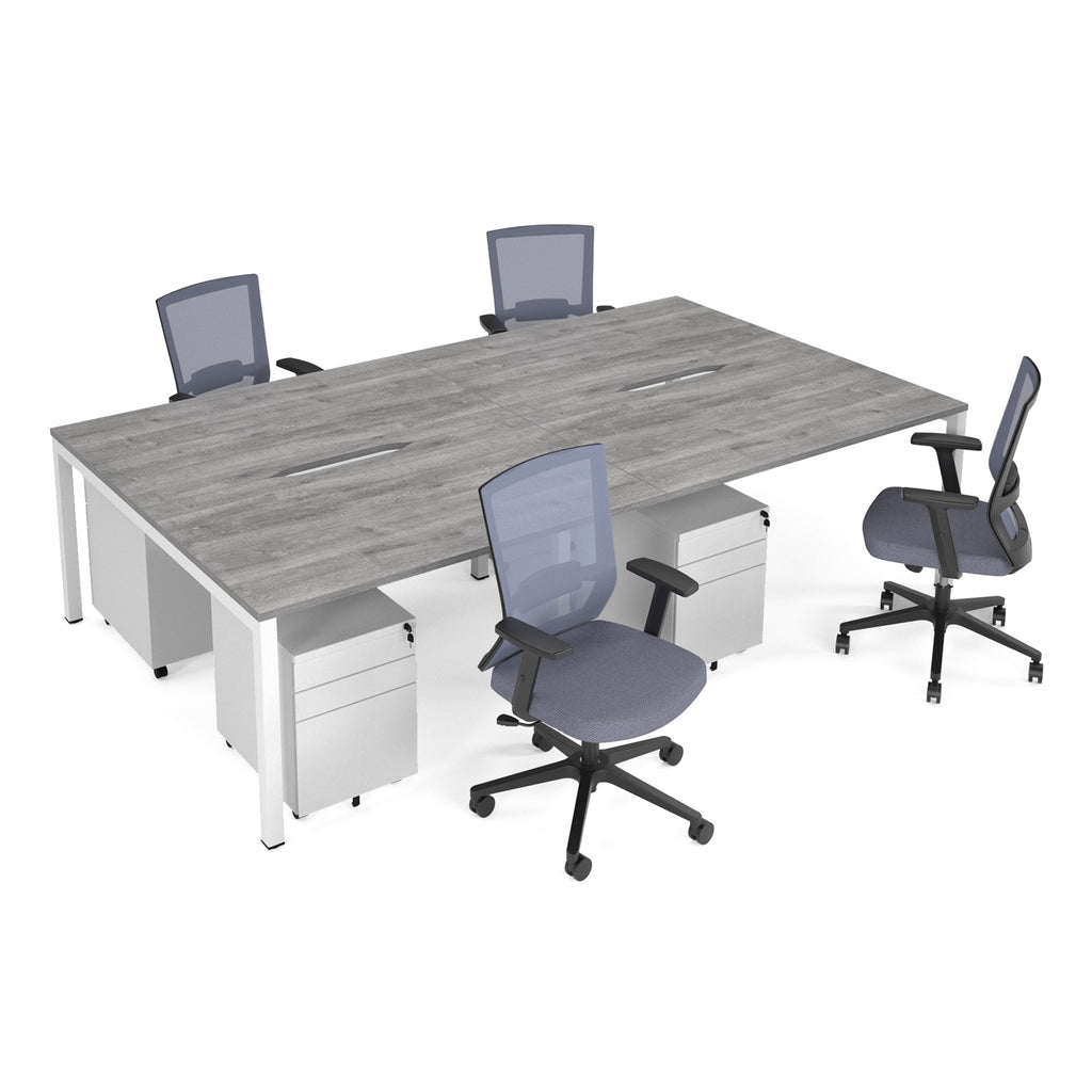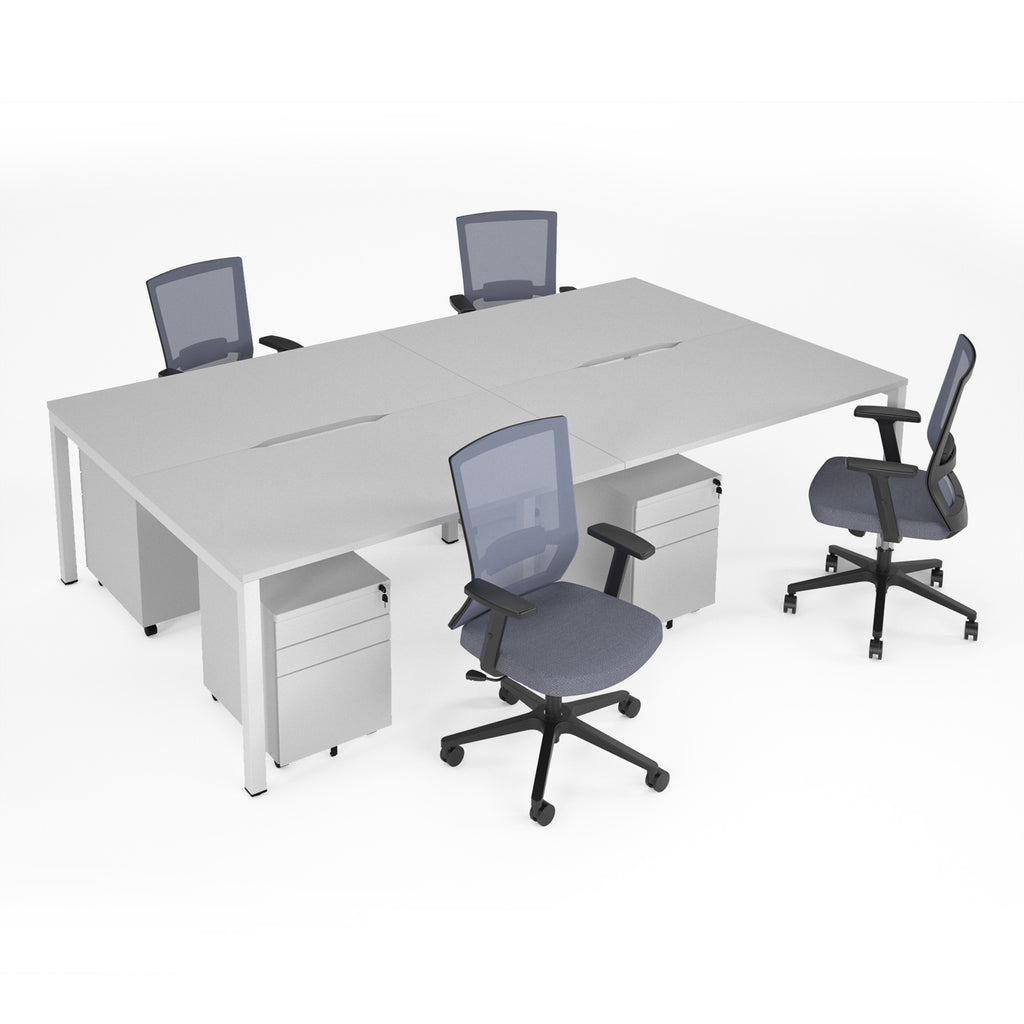 • Four straight 1400x800mm desks in a double back-to-back bench desk configuration